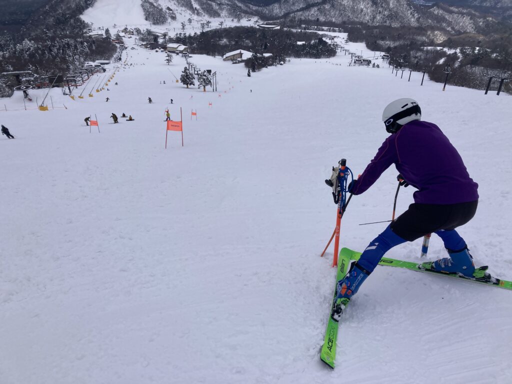 私はポールに入るのは久しぶりで、初めは恐怖心ばかりでしたが、2本3本と滑っていくうちにだんだん楽しく滑れるようになっていきました。タイム計測もやってもらえるので、同世代のOさんと勝った負けたと刺激しあいながら楽しい練習となりました。