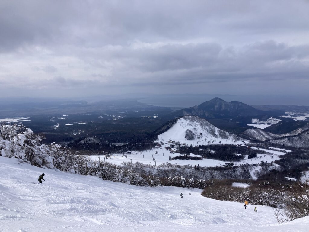 少し曇っていましたが、日本海を眺めながら滑れる大山は、絶景のスキー場です。